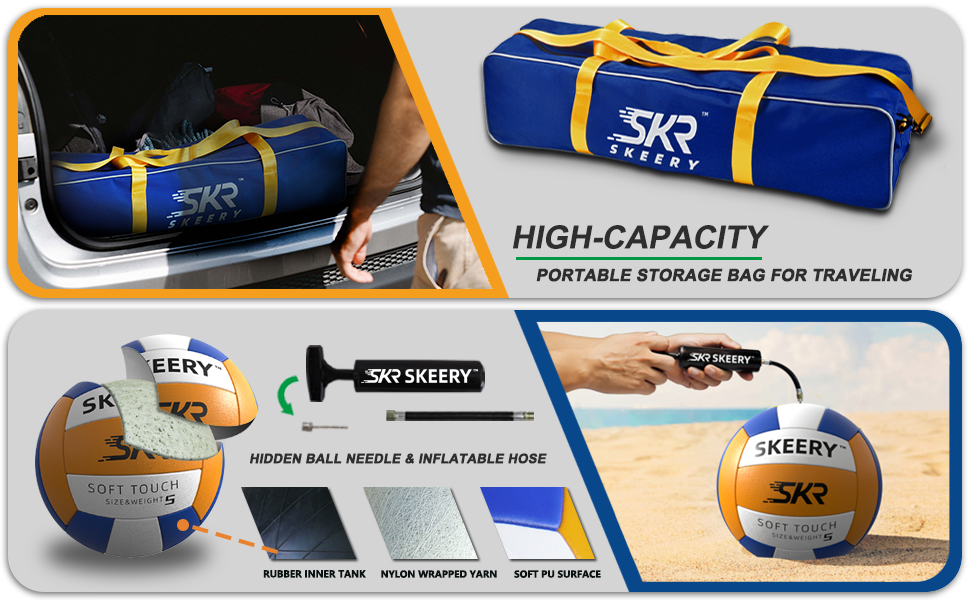 SKEERY Outdoor Heavy Duty Volleyball Net Set(Blue)